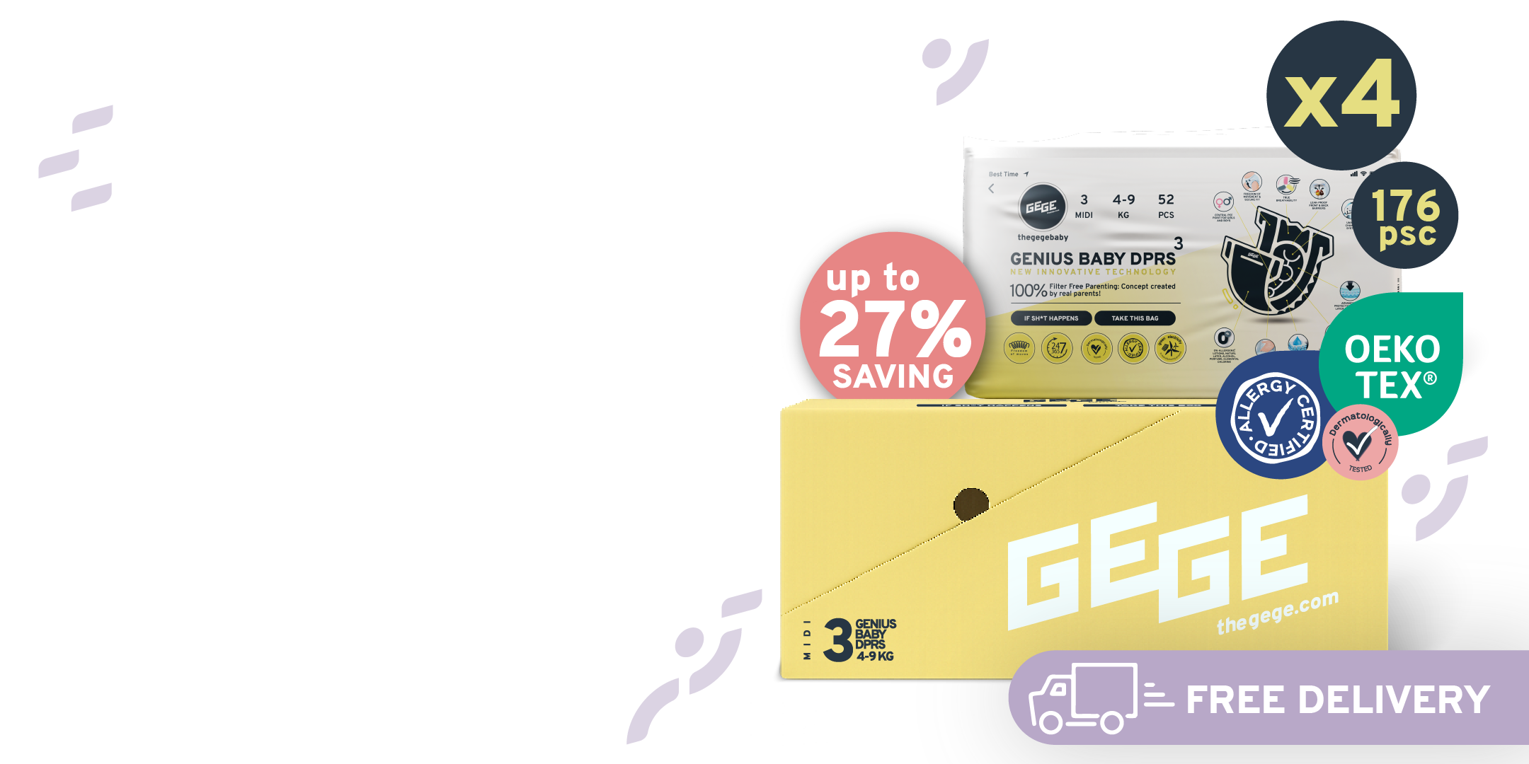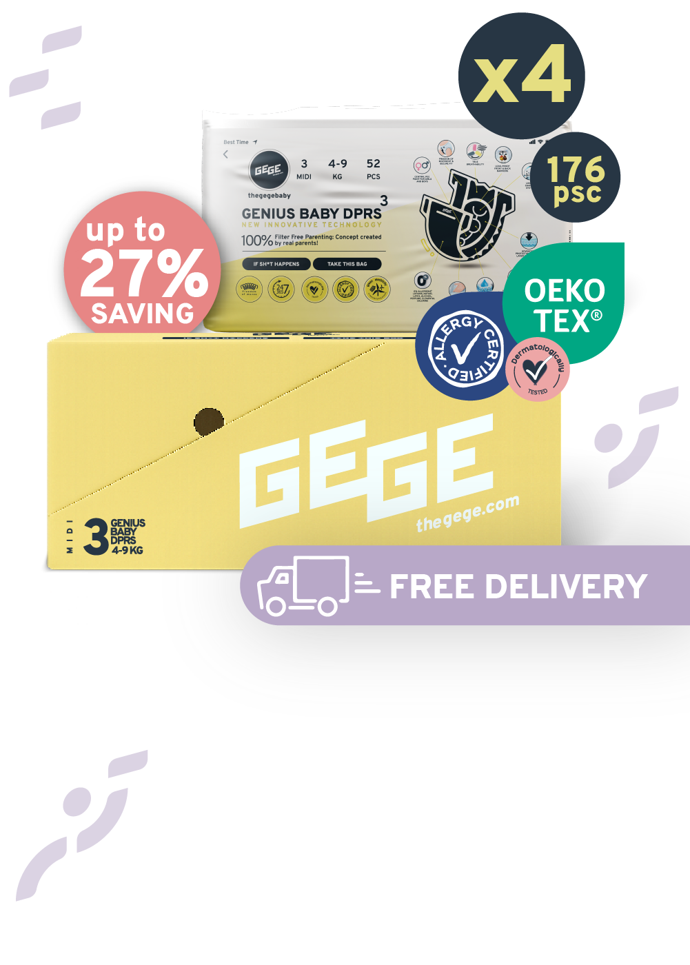 At the moment, we use Gege maxi 4 diapers and pants. Use since 2 months when hit weight line. We love them as they obsorb perfectly and no need to change them during night time. Design is so beautiful and unique and baby just loves them